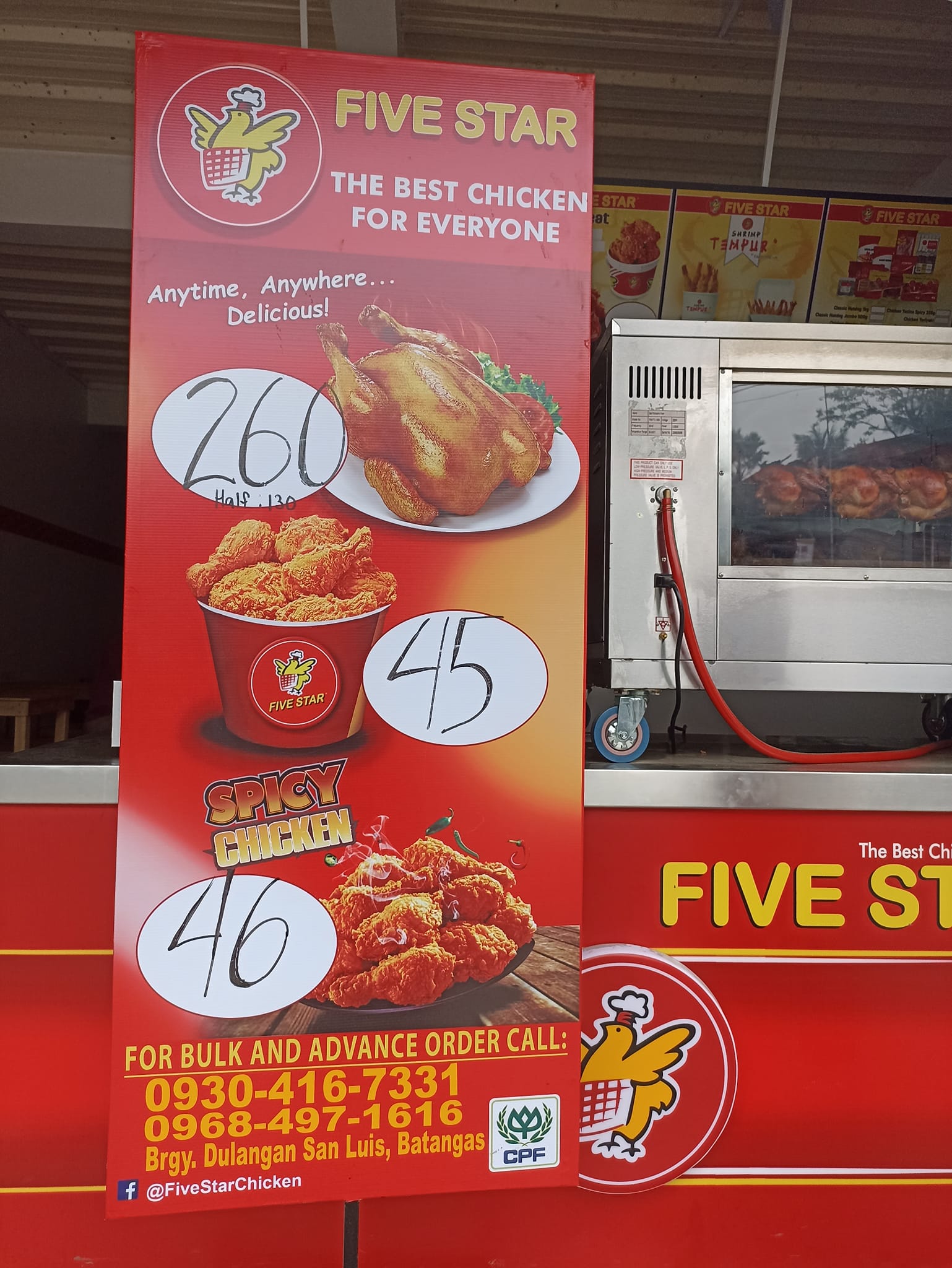This Five Star Chicken branch is located in Dulangan, San Luis, Batangas, at the former location of 3R's General Merchandise, between Alfamart Dulangan & Barangay Hall Dulangan.